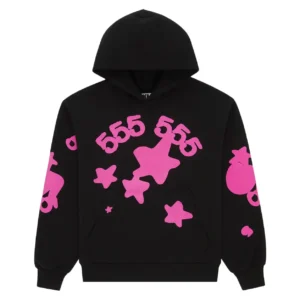 Sp5der Star Graphic Hoodie Black Pink