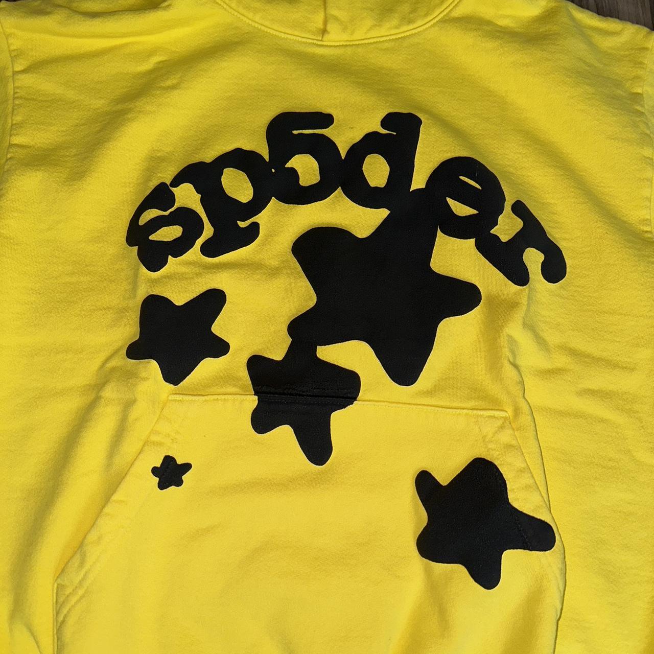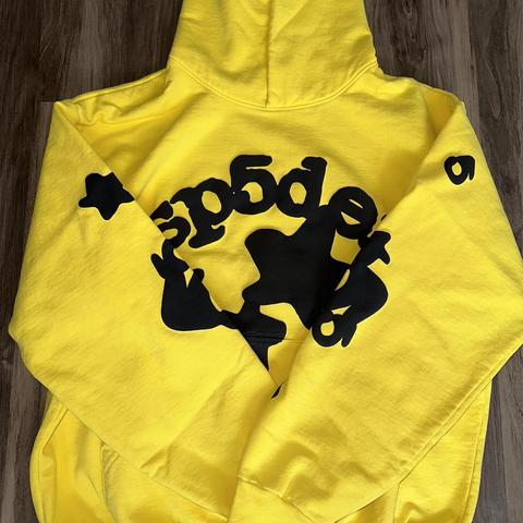 - Gold hoodie featuring the edgy and web-inspired Sp5der Young Thug design, perfect for expressing your rebellious side.