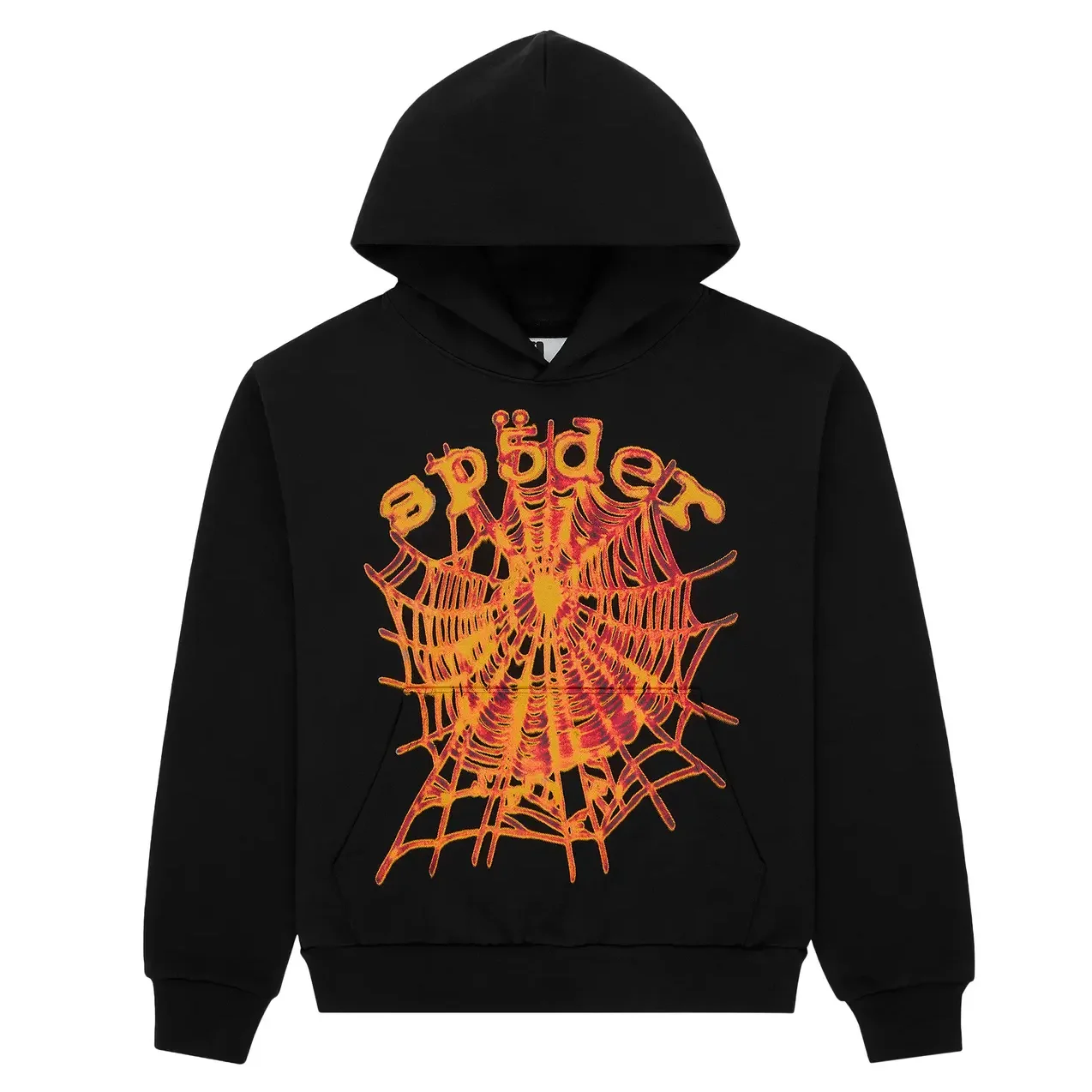 Sp5der Flame Web Graphic Hoodie Black Orange
