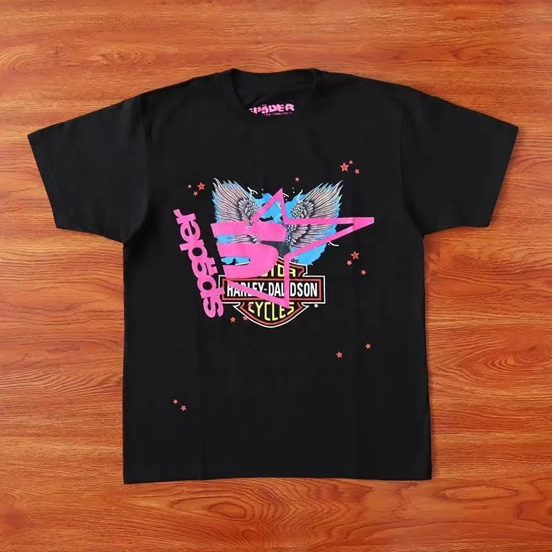 The Sp5der Harley Davidson T-Shirt in black is a cool and iconic choice. The black color is classic.