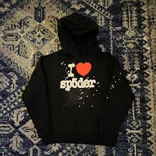 - Classic black hoodie with bold “I Heart SP5DER” graphic
